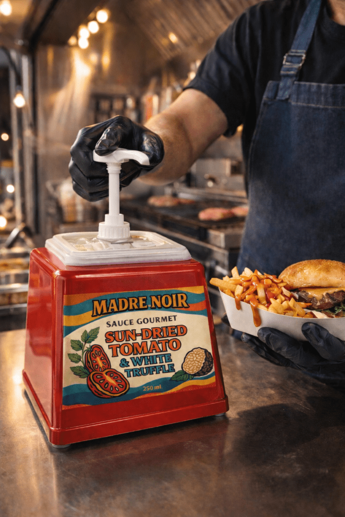 Conçue pour les environnements à fort débit, la sauce Madre Noir Sun-Dried Tomato & White Truffle s’utilise parfaitement en distributeur 2,5 L.